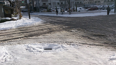 飲み屋に到着するまで凍りついた路面を歩いたのだが、初めは普通に歩いたが、滑って転びそうになった。危うく転倒するところだった。